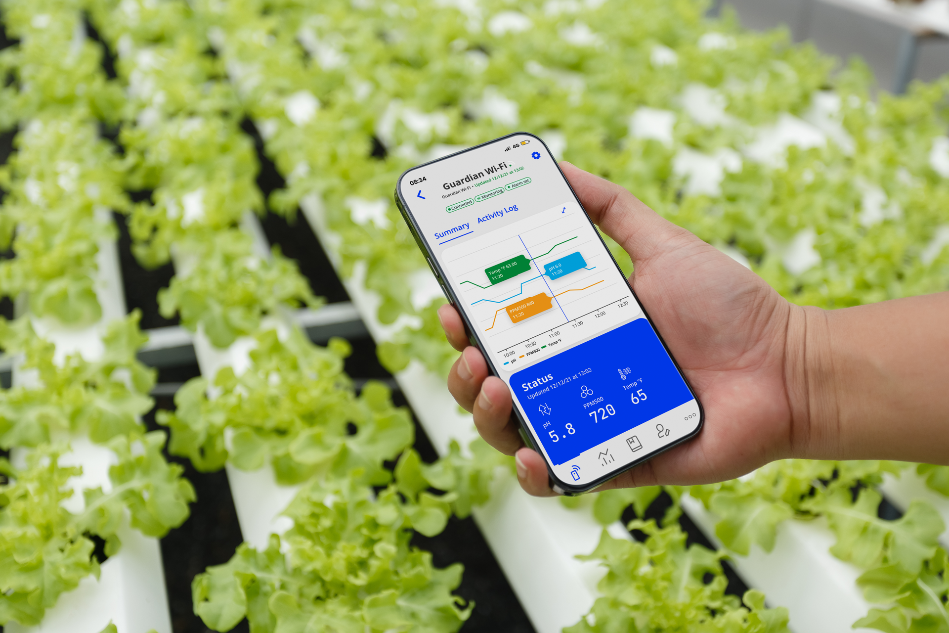 Tracking pH, EC, and temperature over time, growers can identify hydroponic system trends, resulting in informed decisions. Monitoring allows for labour reductions caused by manual testing and data entry.